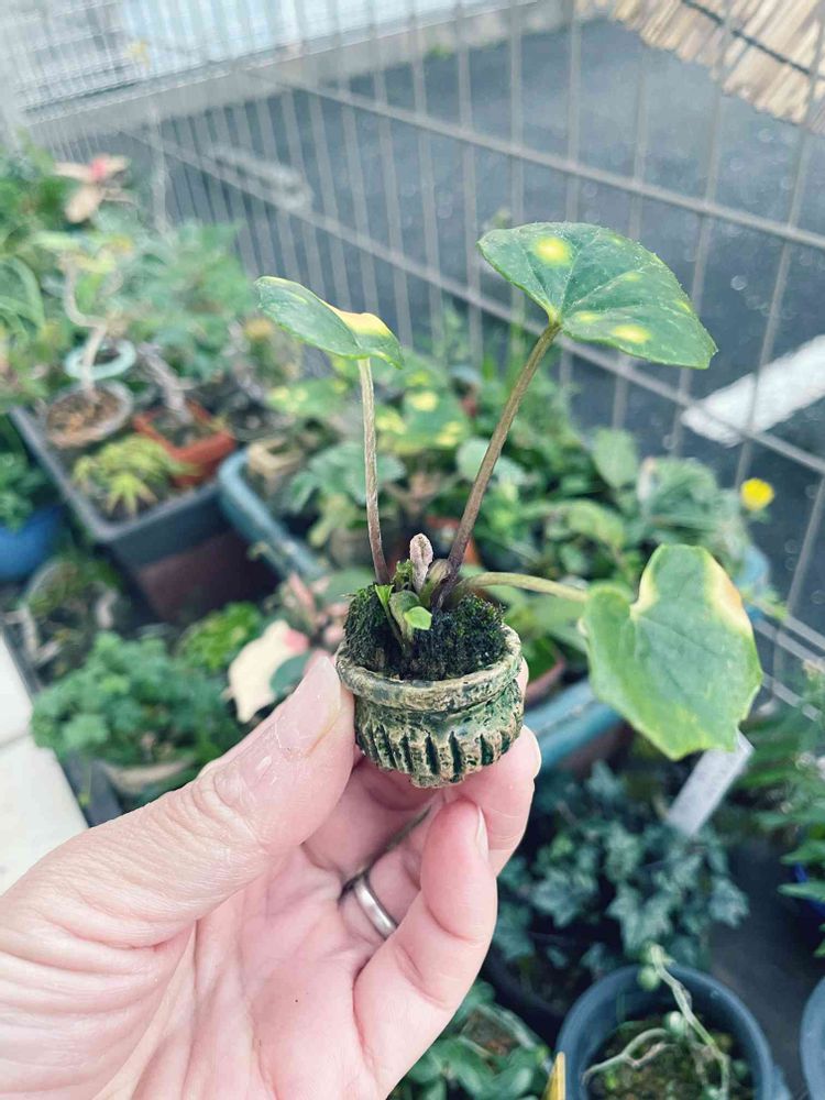 最近、山野草を始めました。旦那は盆栽、私は下草を学び始めました。 自宅で陶芸しています、豆鉢など作っています。の