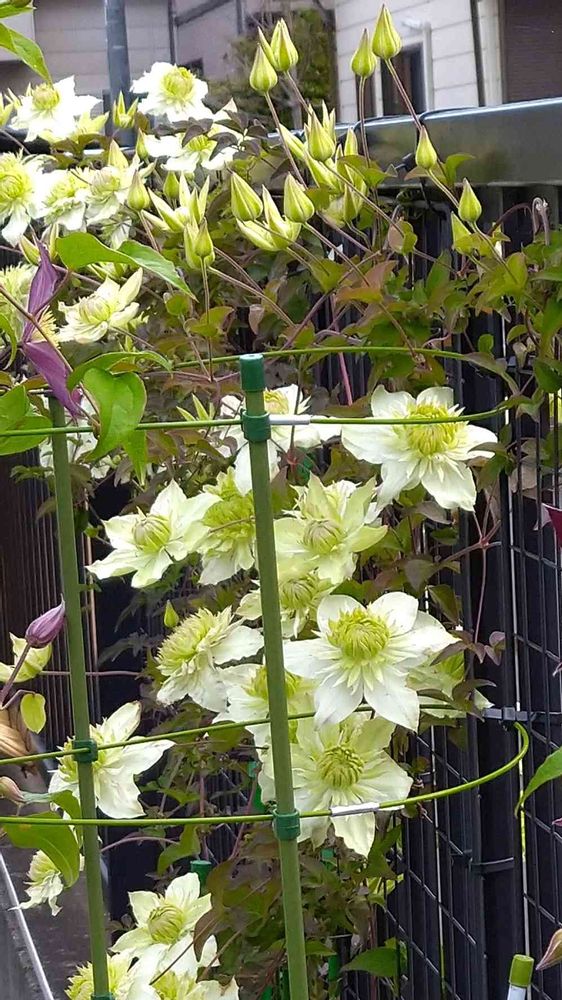 去年買った小さなクレマチス 白万重が満開になりました😃