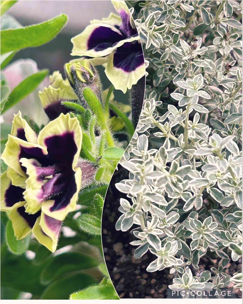 今回旅行先で、お迎えしたお花ペチュニア黒真珠🦪💓💓💓とタイムシルバー🩷
