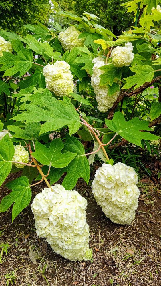 ☆公園⛲️に咲いているカシワバアジサイが、昨日の雨☔️に打たれて重そうでした!まるで…綿あめの様です