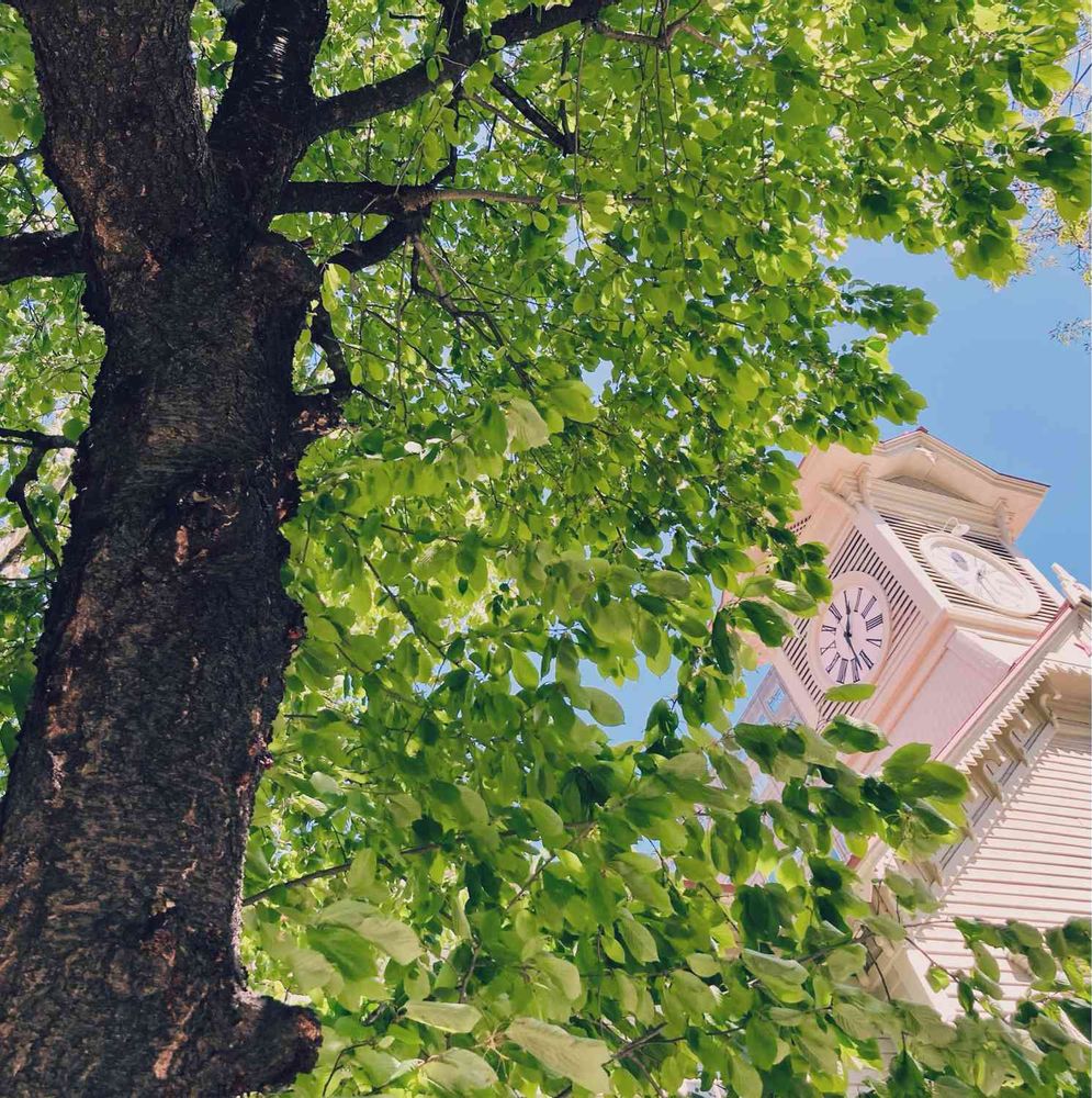 新緑と時計台 爽やかですね( ˘͈ ᵕ ˘͈ )