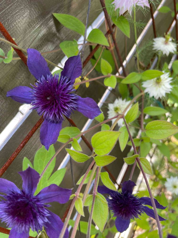 クレマチスは、自由奔放だから行きたい所へってさせてるといろんな所に絡み合って、気づいた時にはカオスになってる事が多い🤣