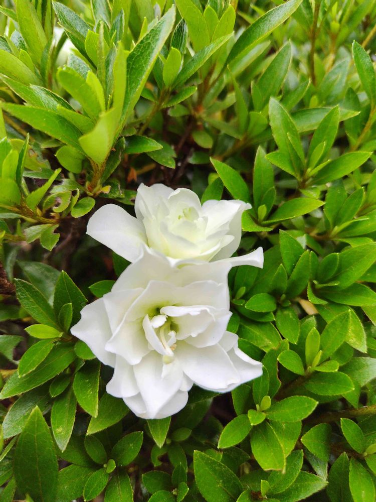 真っ白なサツキの兄弟が、美しいグリーンのキャンバスに鮮やかに咲き誇っていますね。