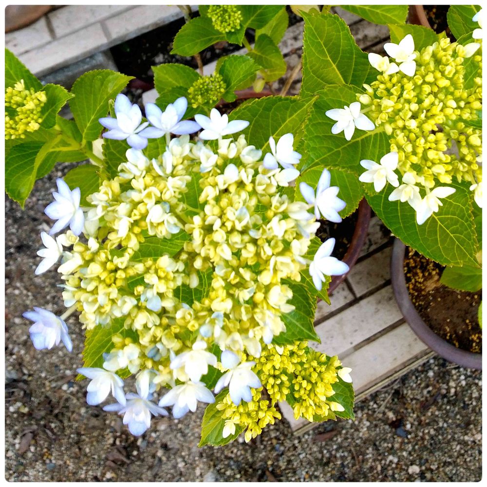 皆さまの素敵な紫陽花ばかり拝見してると、お恥ずかしい程の小さな鉢植えですが、記念に📷
