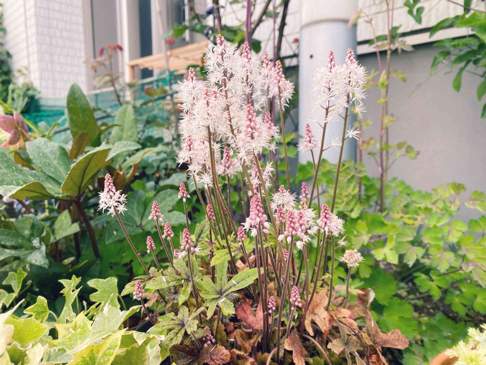 紅葉した葉がまだ残ってるけどたくさん花芽上がって開きました