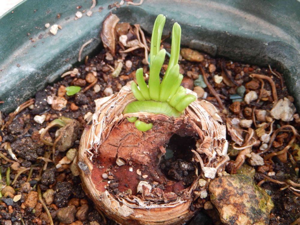 去年(2022年)の秋に,イモムシに食われて,葉はなくなり茎に大きな穴のあいたハマユウでしたが,もしかしたらの願いを込めて,水を遣り続けていました.ようやく,緑のものが見えてきました.でも,葉の形は違うような?これからの変化が楽しみです.