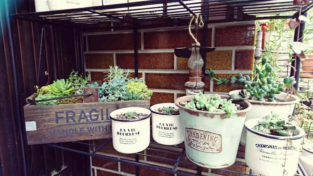 軒下は多肉の鉢だらけ。