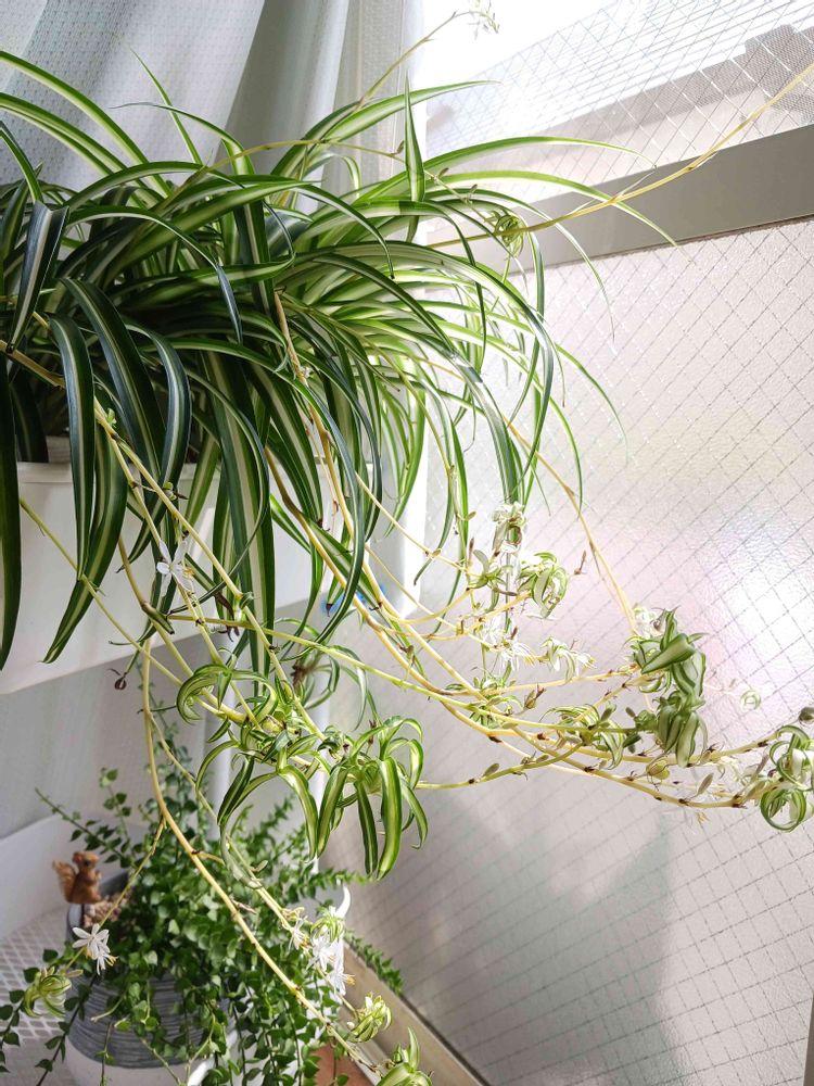 オリヅルラン定番植物だけど涼やかでかわいい✨