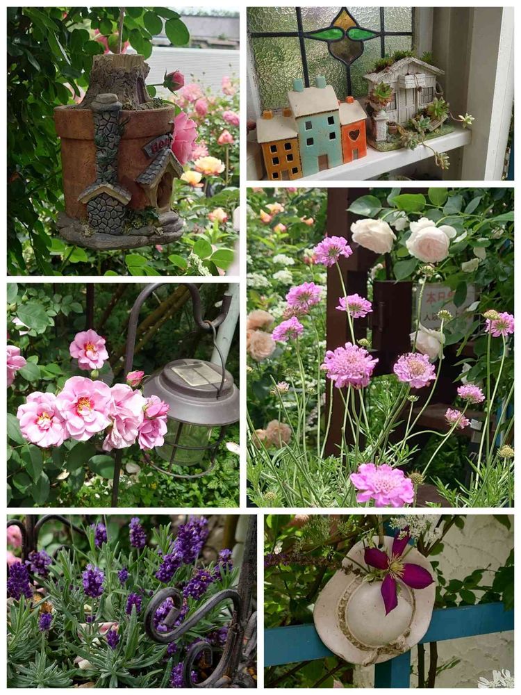 可愛い小物やオブジェも飾られラベンダーやスカビオサも可愛い
