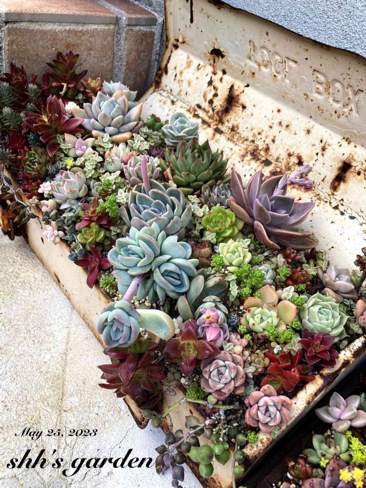 結構前からある寄せ植えで真ん中の群生なんかはどんどん増えたりしているしスカスカしたら増えたセダム をちょい足ししたりしているので我が家では1番お安い寄せ植えです😁