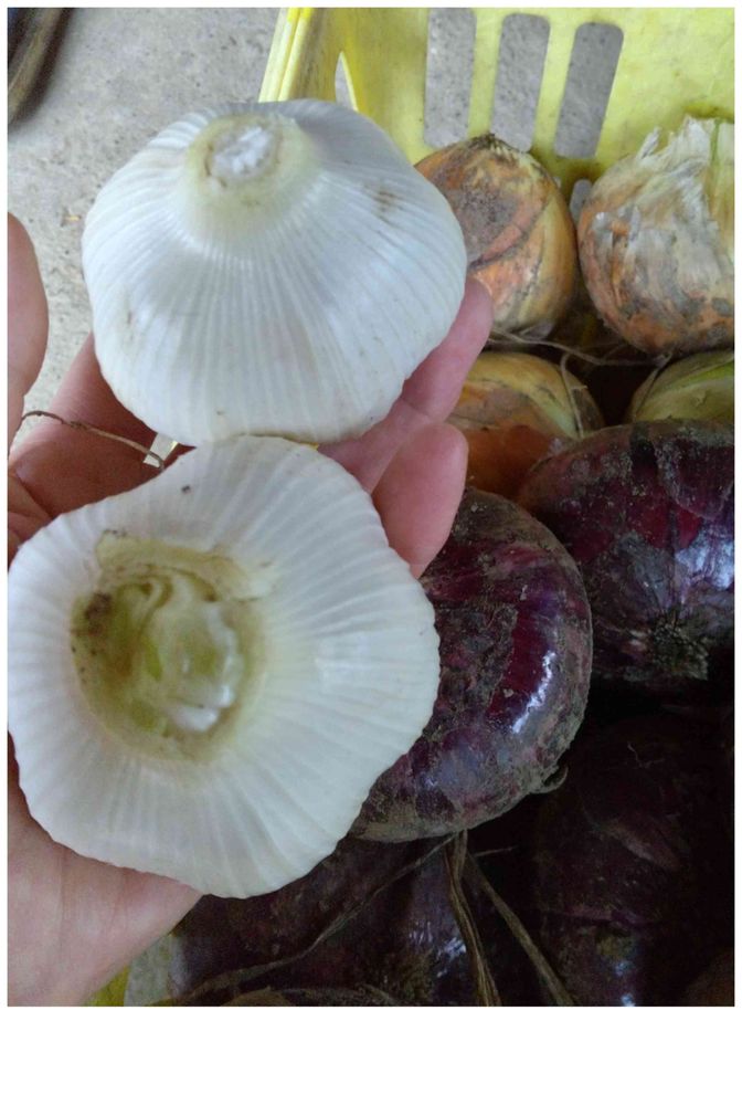 去年あまり良くできなかったので量を控えたニンニクは、ふっくら肥ってまっ白。とても良くできましたよ。