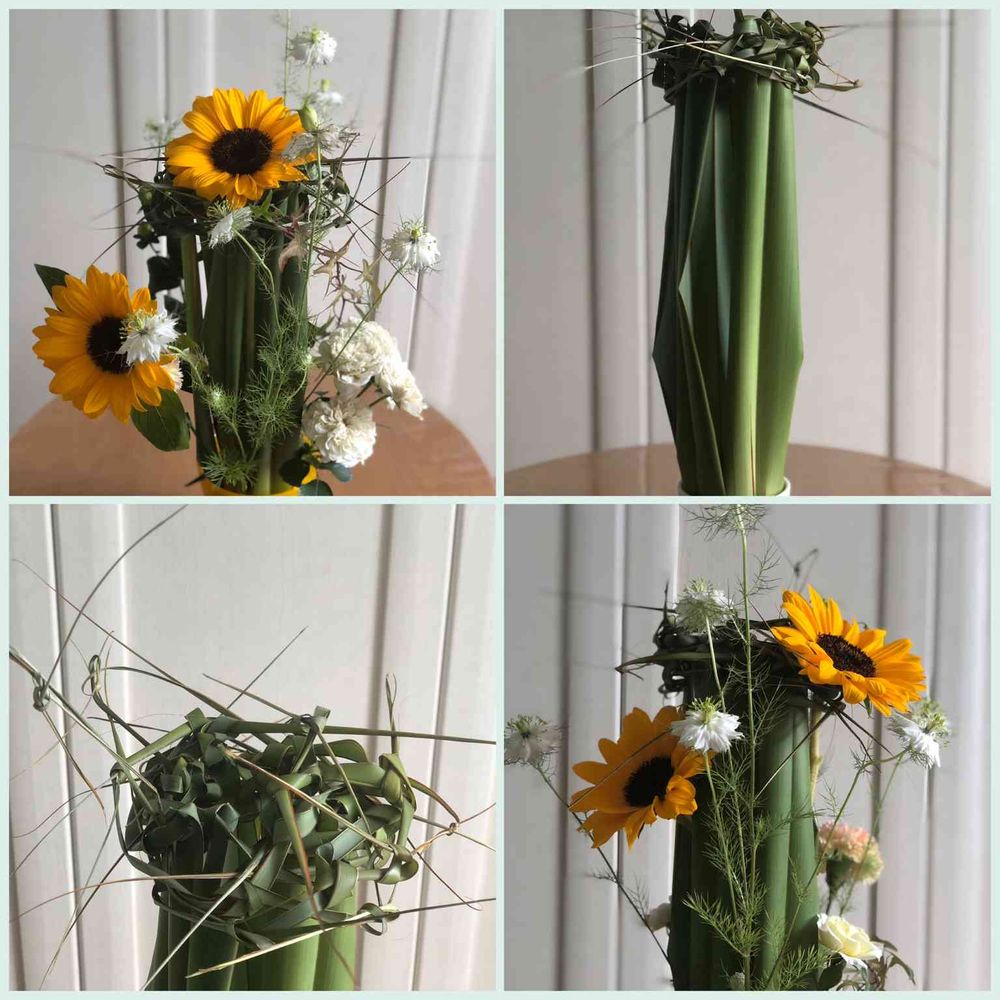 ○花材の茎を少しずつ切り詰め挿し直し