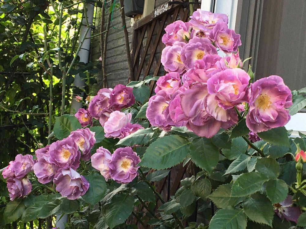 今は流石に一番花は終わったものの、2番花の蕾をつけ、シュート1本にサイドシュート3本だしてくれて、私を一番元気付けてくれているバラさんです💘