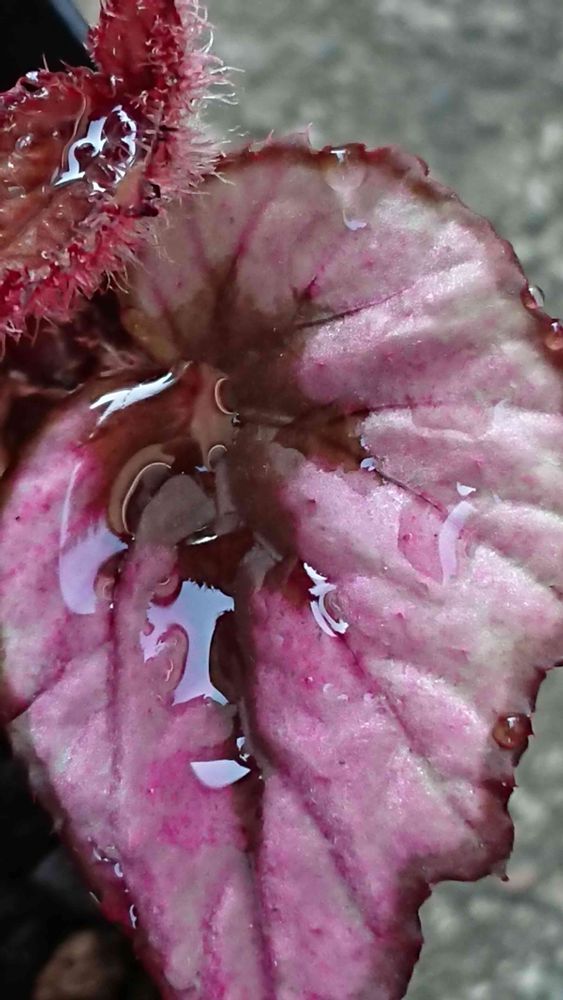 ベゴニアの葉が こんなに お水を 溜めるのも