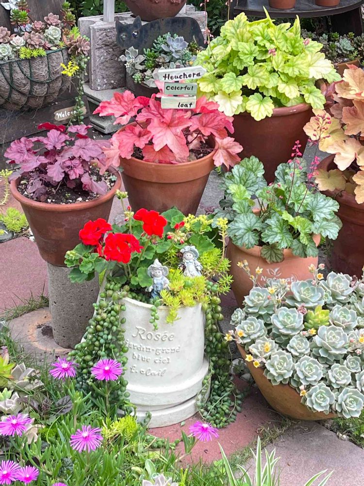 こんな風にカラフルなヒューケラさんたち見るとお迎えしたくなる〜😆