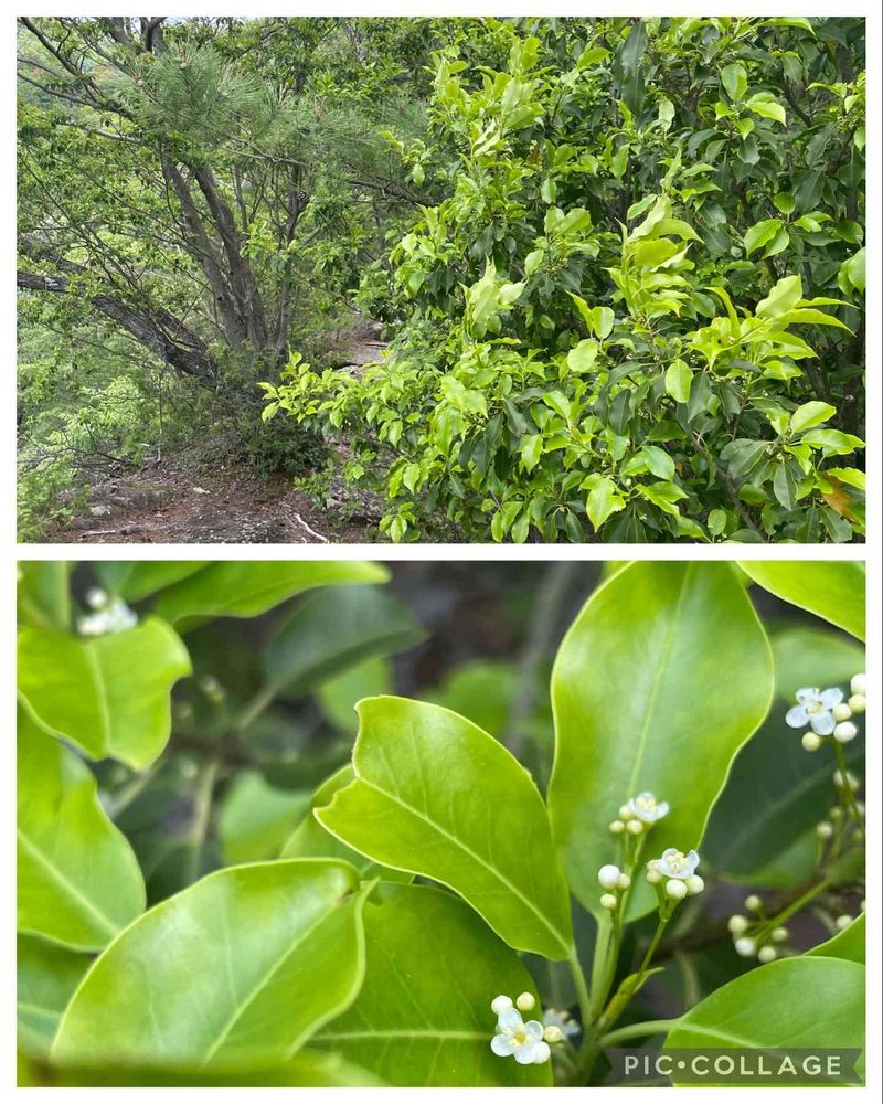 山道にて葉っぱの間に、小さな小さな白い花を見つけました♡