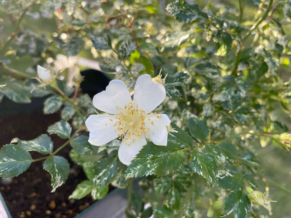 ラックスさんの広い庭,斑入りのテリハノイバラ,鉢植えの投稿画像