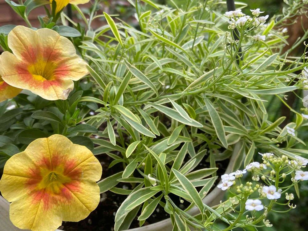 変わり咲き大輪カリブラコアのカリビアーナと スーパーアリッサムの寄せ植え🌼