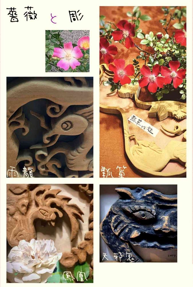 我が家のミニ薔薇盆栽と木工。