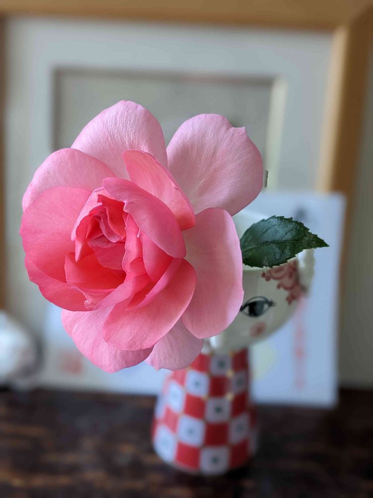 まだ小さいので蕾✂して一輪だけ残しておいた蕾が開き始めた咲き始めた頃に✂して花瓶に挿しておいたもの。だいぶ開いてきたけれど崩れない花姿素敵✨色合いも可愛い💞