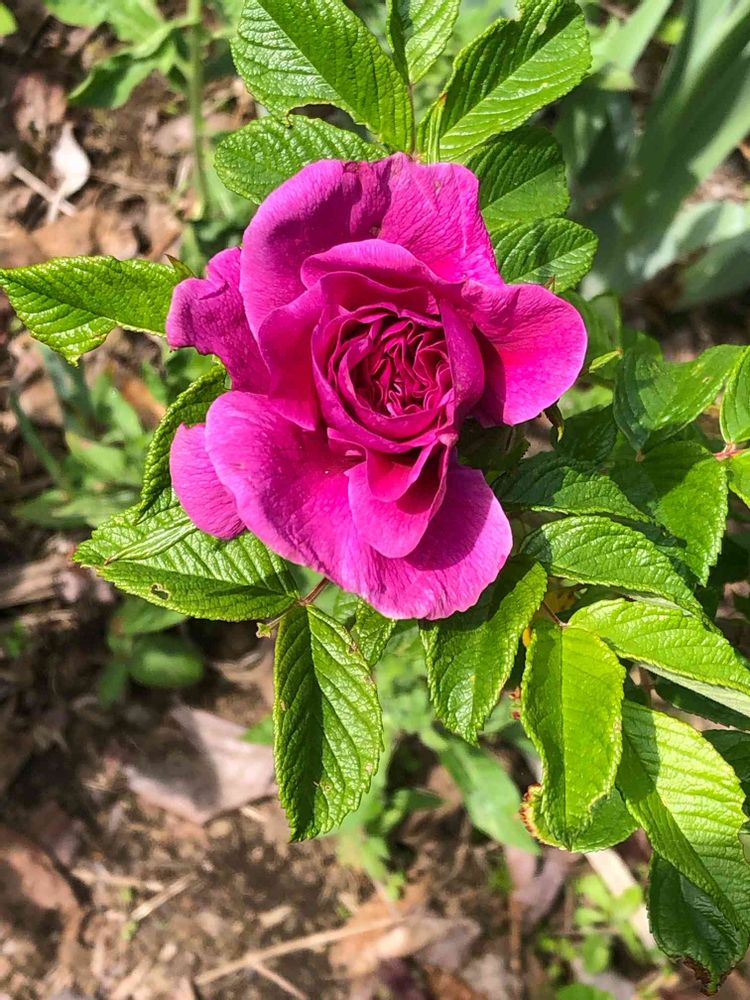 昨年、いただいたバラが、咲きました。葉は、ハマナスの様ですが八重で、花も同じくらいですね🤗