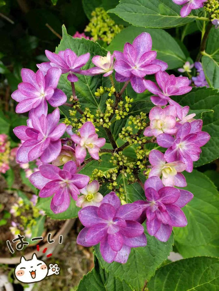我が家のガクアジサイです。💕名前があったのに🤭🤣🤣思い出せません認知症になりよるかな⁉️ても綺麗に咲いてくれてます🤭。