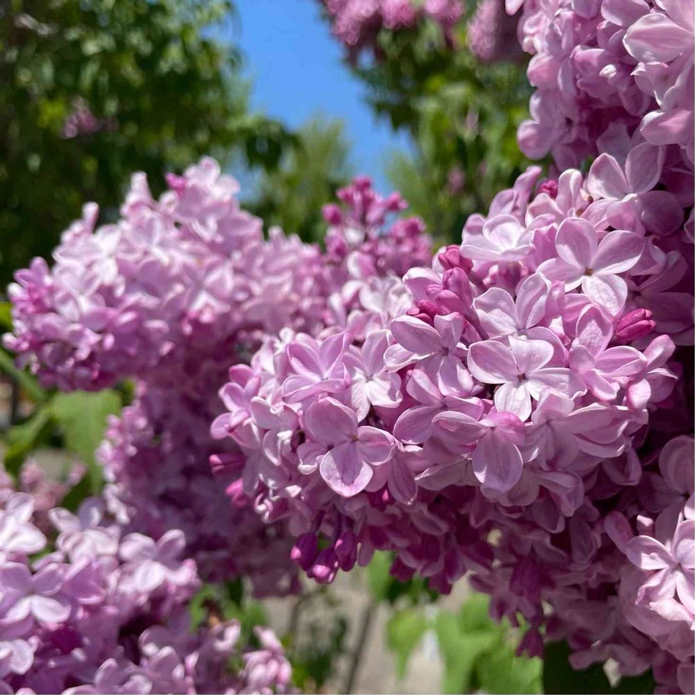 札幌の透き通るような青空に淡い色のライラックはとても美しいです❀