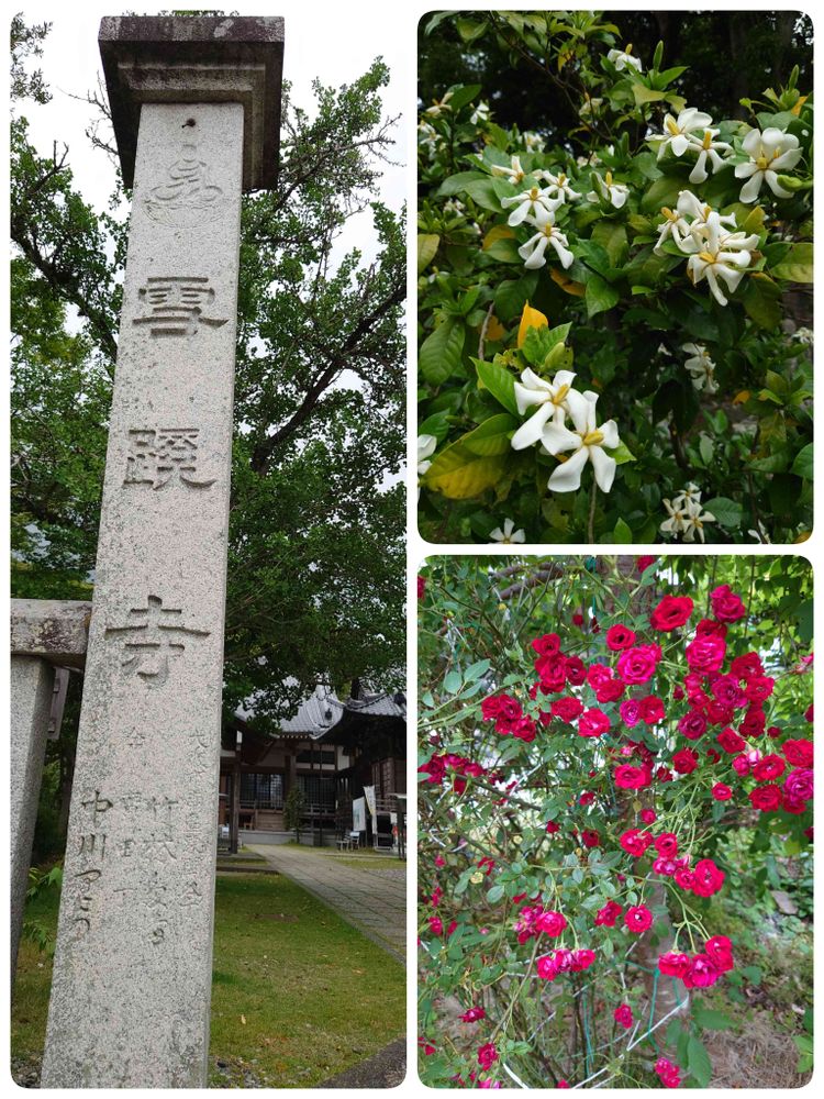 33番札所、雪蹊寺には、香りの良いクチナシと、鮮やかなミニバラ🌹が咲いていました🎵