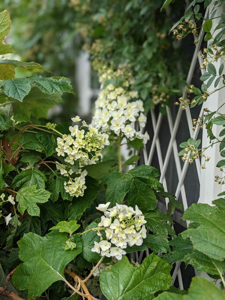我が家のカシワバアジサイが年々巨大化して通路を塞いでおります😅