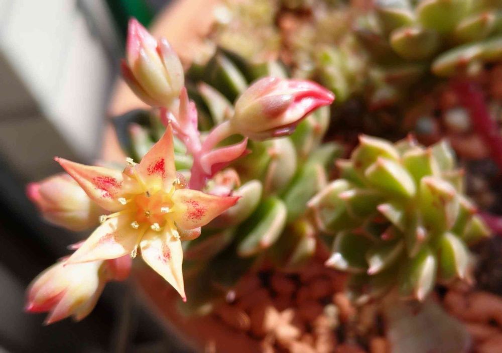 今年は多肉のお花が何種類か見られました!オリビアさんは上向きに花が咲いたので、写真がいい感じに取れました📷