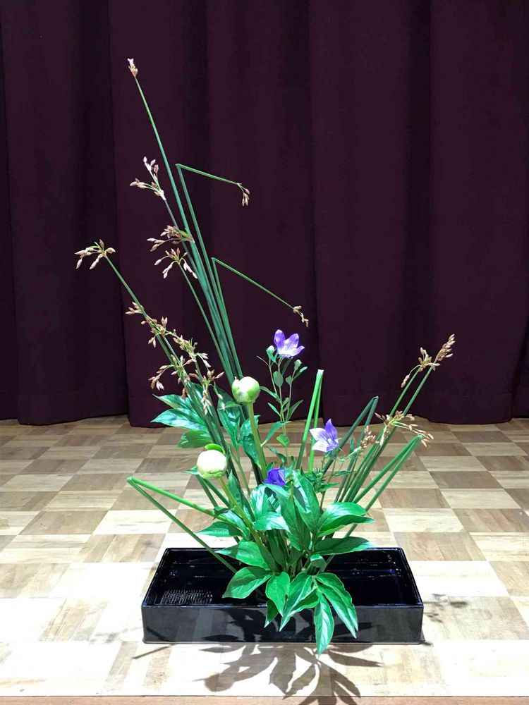 シャクヤクをプラスして、格花を盛花に生け替え。