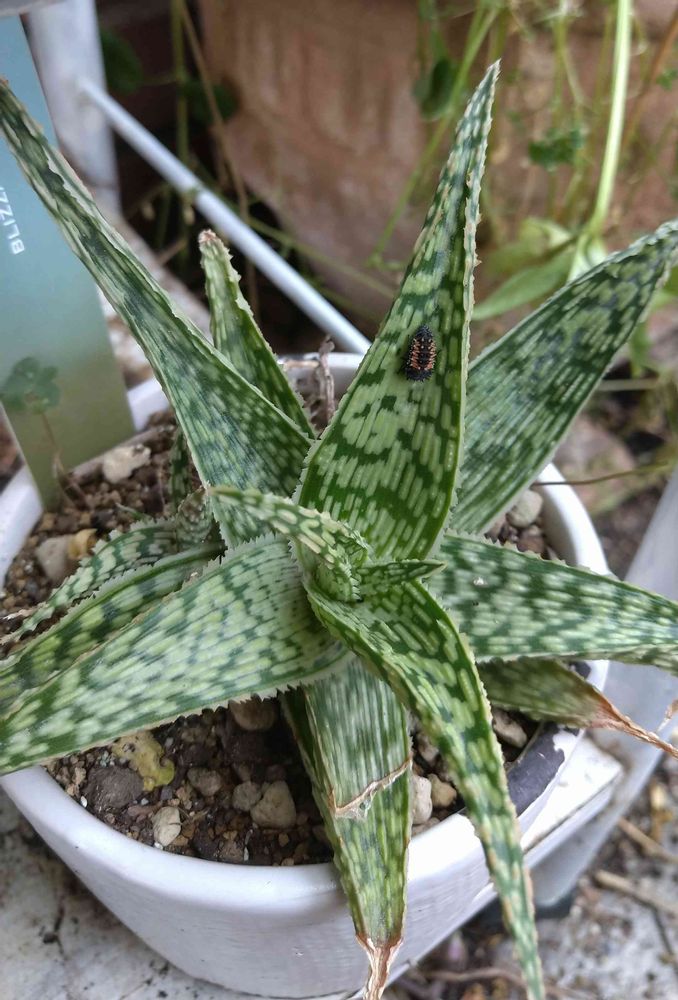 花ともさんから贈って頂いたアロエにてんとう虫の蛹。