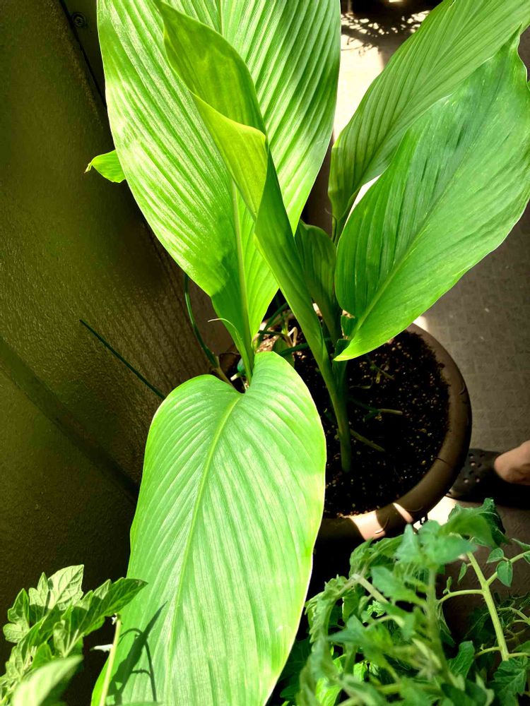 ウコンの葉っぱが綺麗な緑色だったので、パチリ📸