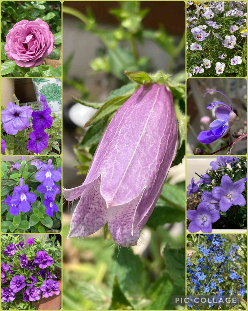 右 オジさんビオラ、ブルーエルフィン、カンパニュラメリーベル、シノグロッサム