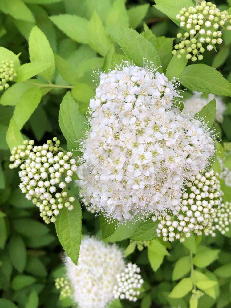 このシモツケは高さ抑えて直径40cmくらいになってます。3年ならもうすぐ根元からビュンビュン枝が出ますよ〜
