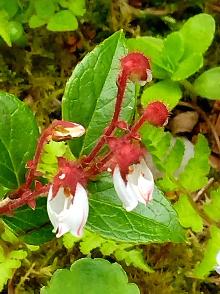 赤色の萼に白いベル型🔔のお花で、可愛いですよね💕