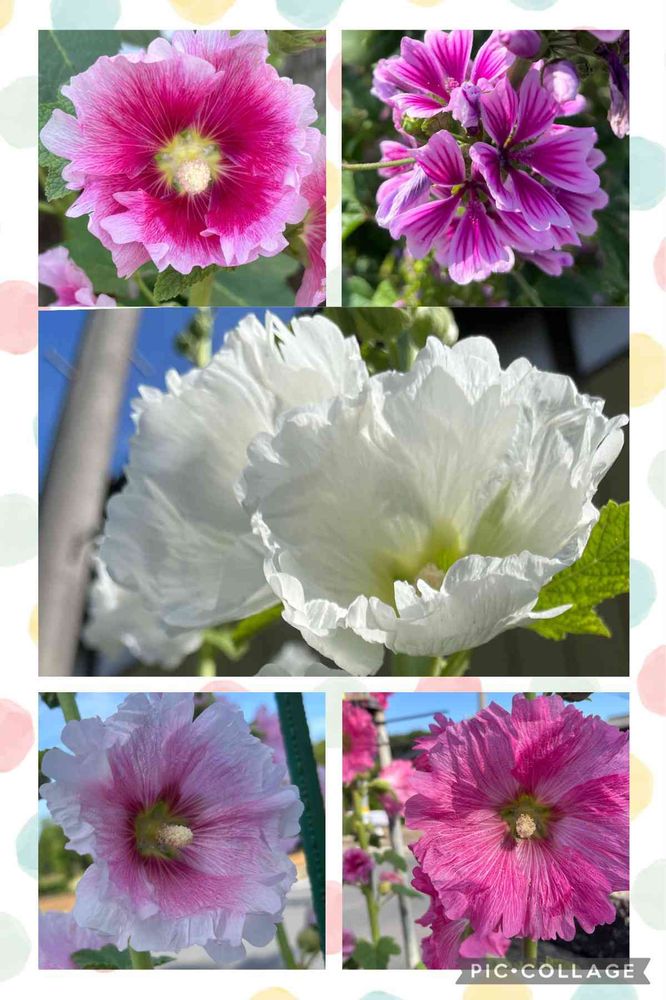今朝、🐕のお散歩で、道の端っこに咲いていたタチアオイのお花.。.:*♡