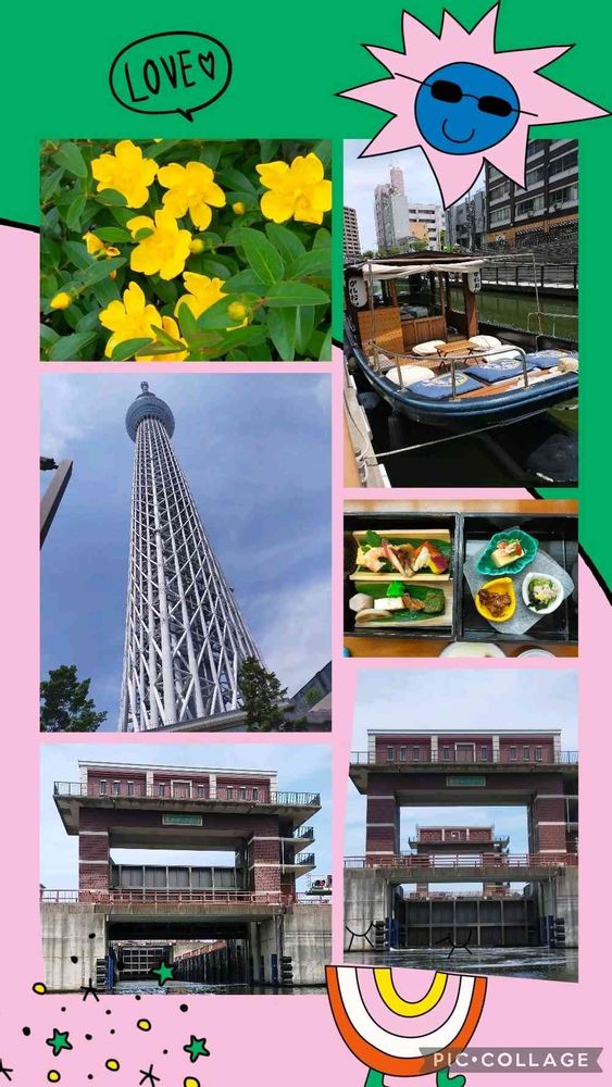 今日は暑いぐらいの日差しでしたが、スイミング仲間と一緒にスカイツリー真下の おしなり公園船着場から、2時間15分で下町ぐるっと一周舟遊びを体験して来ました🎶