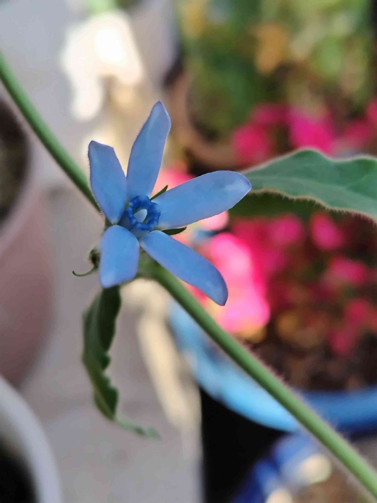 去年の秋園芸店のおばさんに頂いたブルースターの鉢です🥰冬越し成功して今年無事咲きました 1輪蕾いっぱいです(*・▽・)*_ _)♪( *´﹀`* )( *´﹀`* )