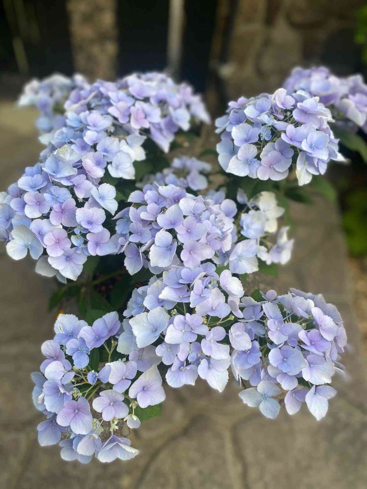 土壌のpHによってブルー、ピンク、パープルになる様ですが混ざって咲く事もあるとか。。。