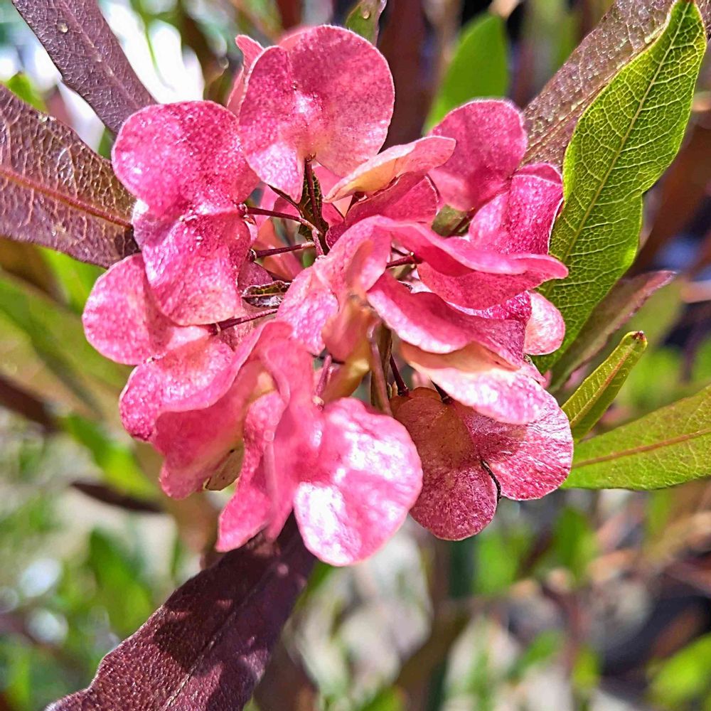 我が家の「ドドナエア(ポップブッシュ)」に花のようなサヤが付くようになりそれが赤く色づきました✨