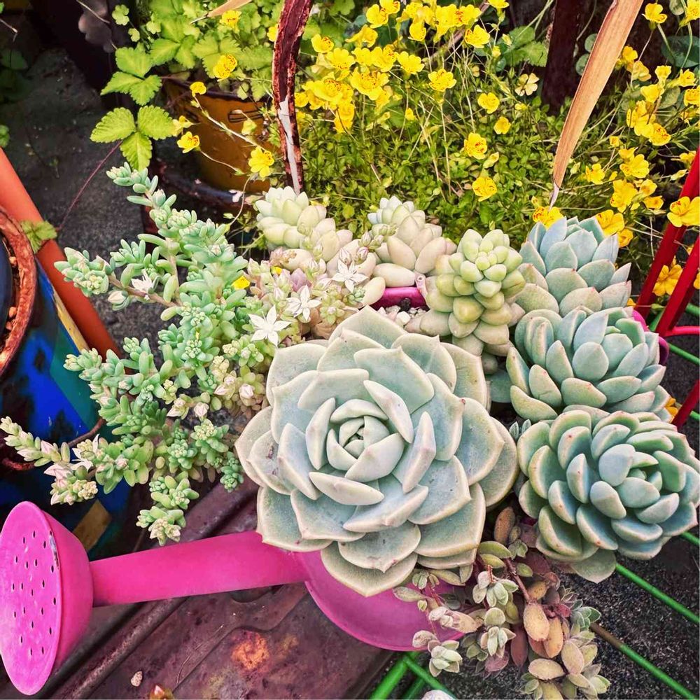 寄せ植えのサダムミルキーウェイのお花とメカルドニア。メカルドニアは毎年可愛いお花を長期間次々と咲かせてくれます。強くて可愛くておすすめです🥰