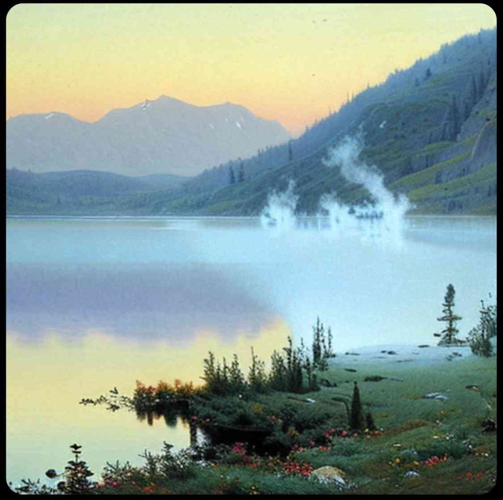 高解像度, 透明水彩, 緻密で美しい水, 超細密, 幽玄的, 一番最初, 10K,高品質,写実的,油絵, 風景画 , リアル, 絶景, 北海道で最も写真に撮られた場所”とも呼ばれる湖畔, イワン・クラムスコイ