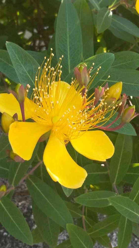 ビヨウヤナギとヒペリカム、雄しべの数が多いのがヒペリカム、葉の形が丸みがあるのがヒペリカムだそうです🤔