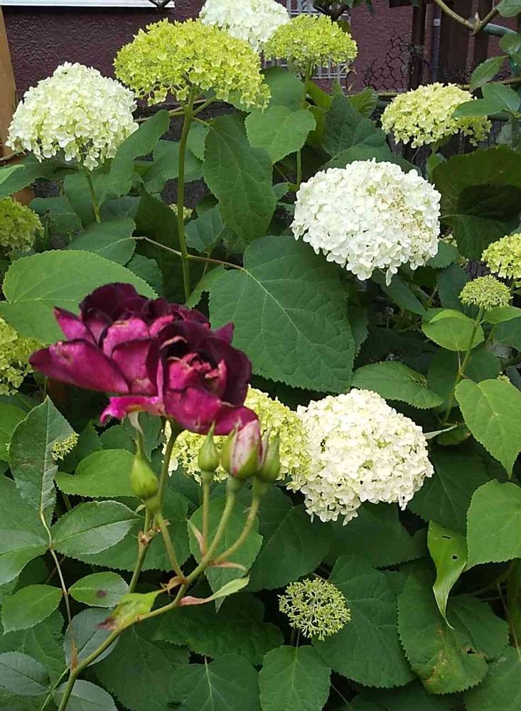 アナベルとバーガンディ🌹のコラボ素敵ですね。😍
