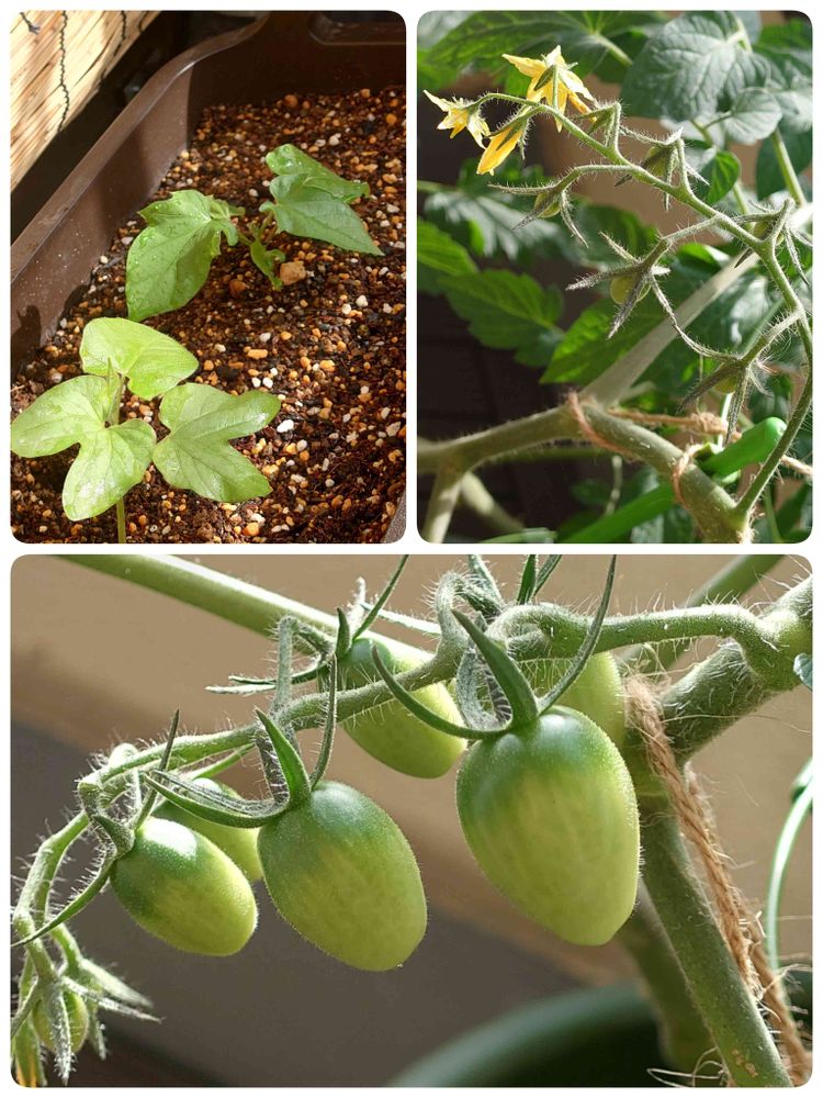 バルコニー/ベランダ,ミニトマト,垣根朝顔の投稿画像
