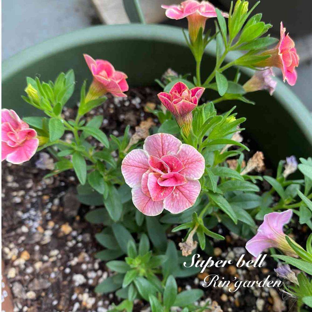 凛子せんせいさんのバルコニー/ベランダ,スーパーベル ダブルチェリーリップル,ベランダガーデニングの投稿画像