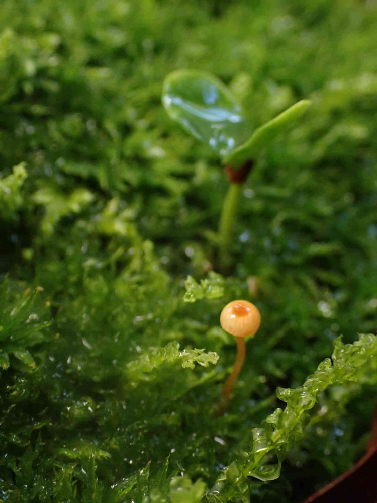 苔栽培してるプランターにキノコ出てきた🤣🤙🍄