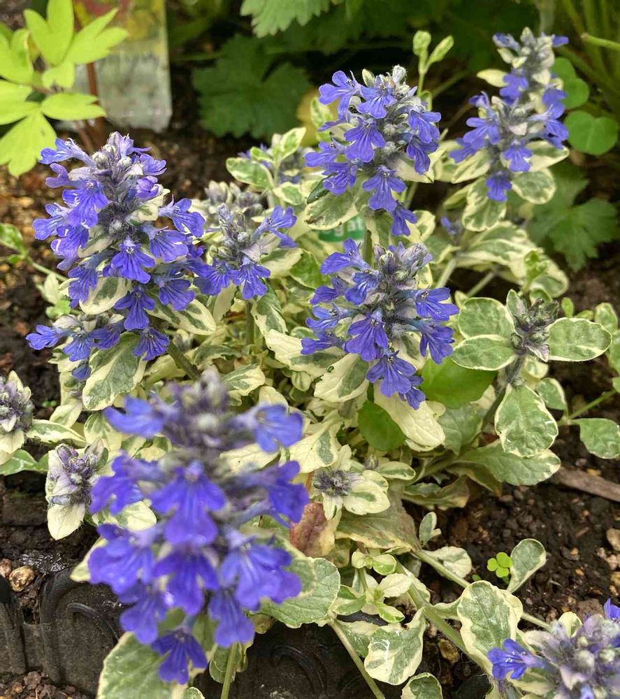 去年植えたアジュガ バリエガータ。咲いてきました🌸去年はお花はほぼ見えなかった子。こんな綺麗な青花なんだー🥰他のアジュガよりもお高めでしたが、これは仕方ないかー。アジュガは3年目から爆発的に増える気がするから来年勢力を拡大して花壇の縁を覆ってくれるといいな💕葉も斑入りで綺麗だし🩷