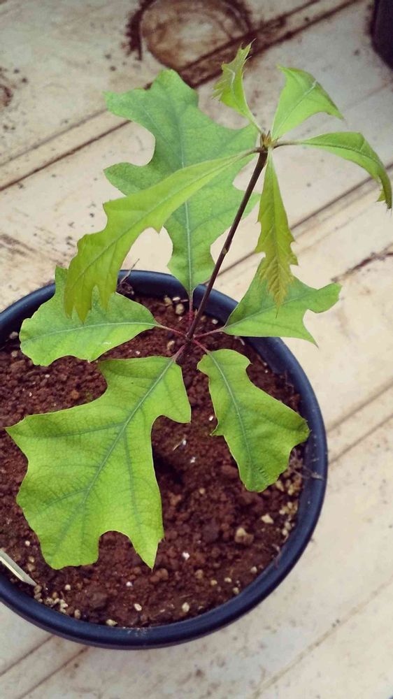こちらのあんまり葉が健康的ではないなあと思っていたピンオーク、2段目が出てきました。